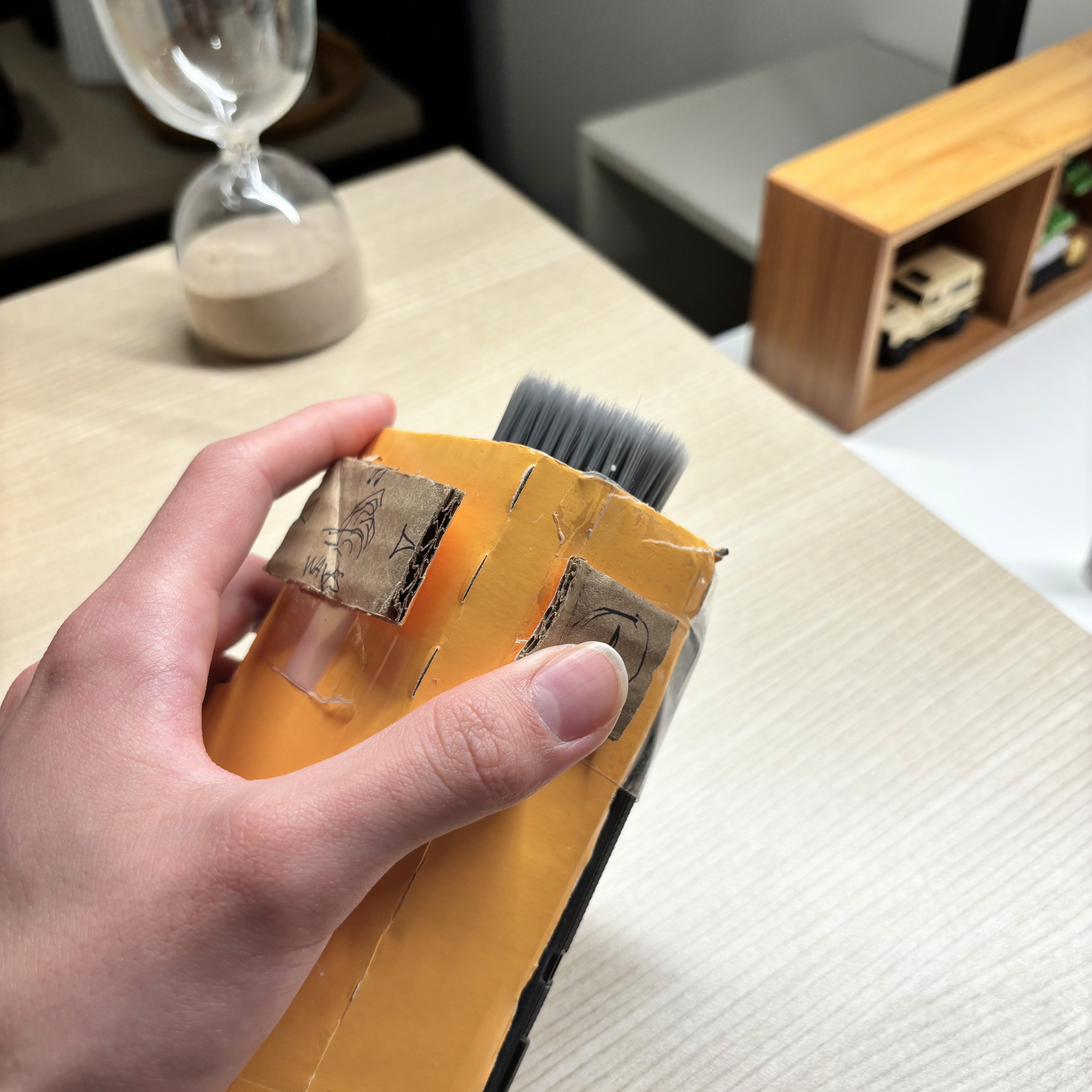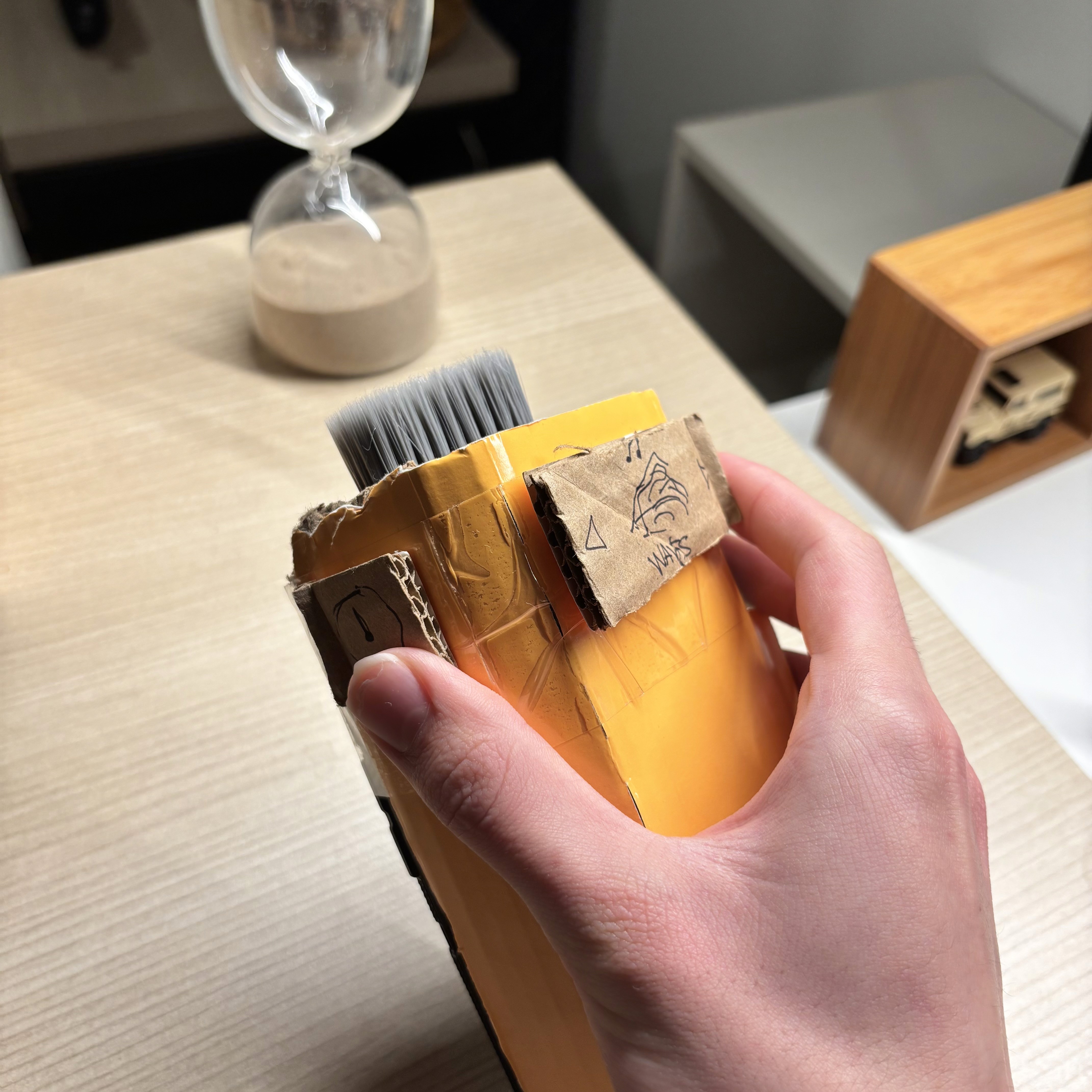 The second video shows the first take, where the loose keyboard brush component was removed instead of the entire brush handle. The fit of the components were quite tight and the objects did not have the same size. Below is an audio recording of the feedback I received after user testing.