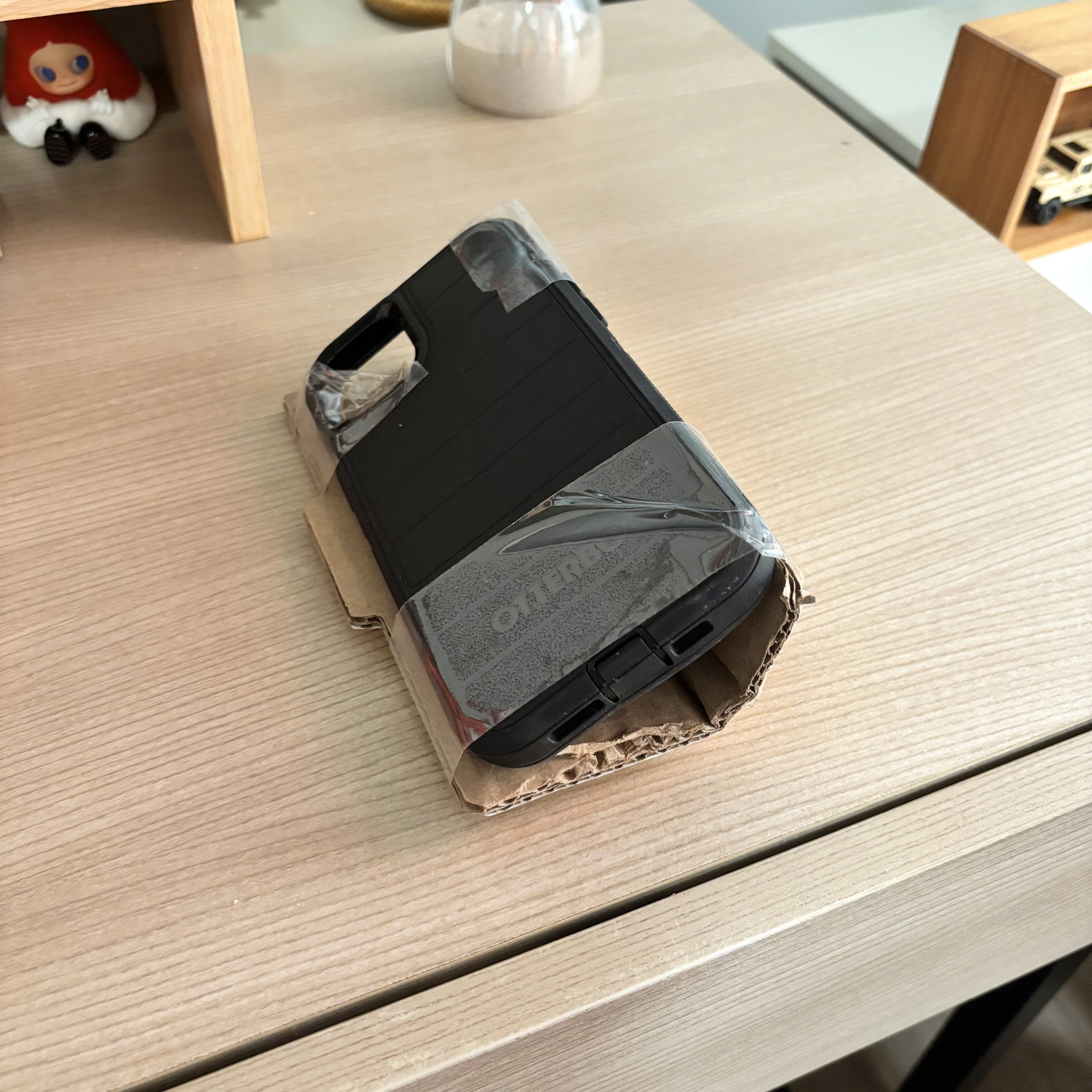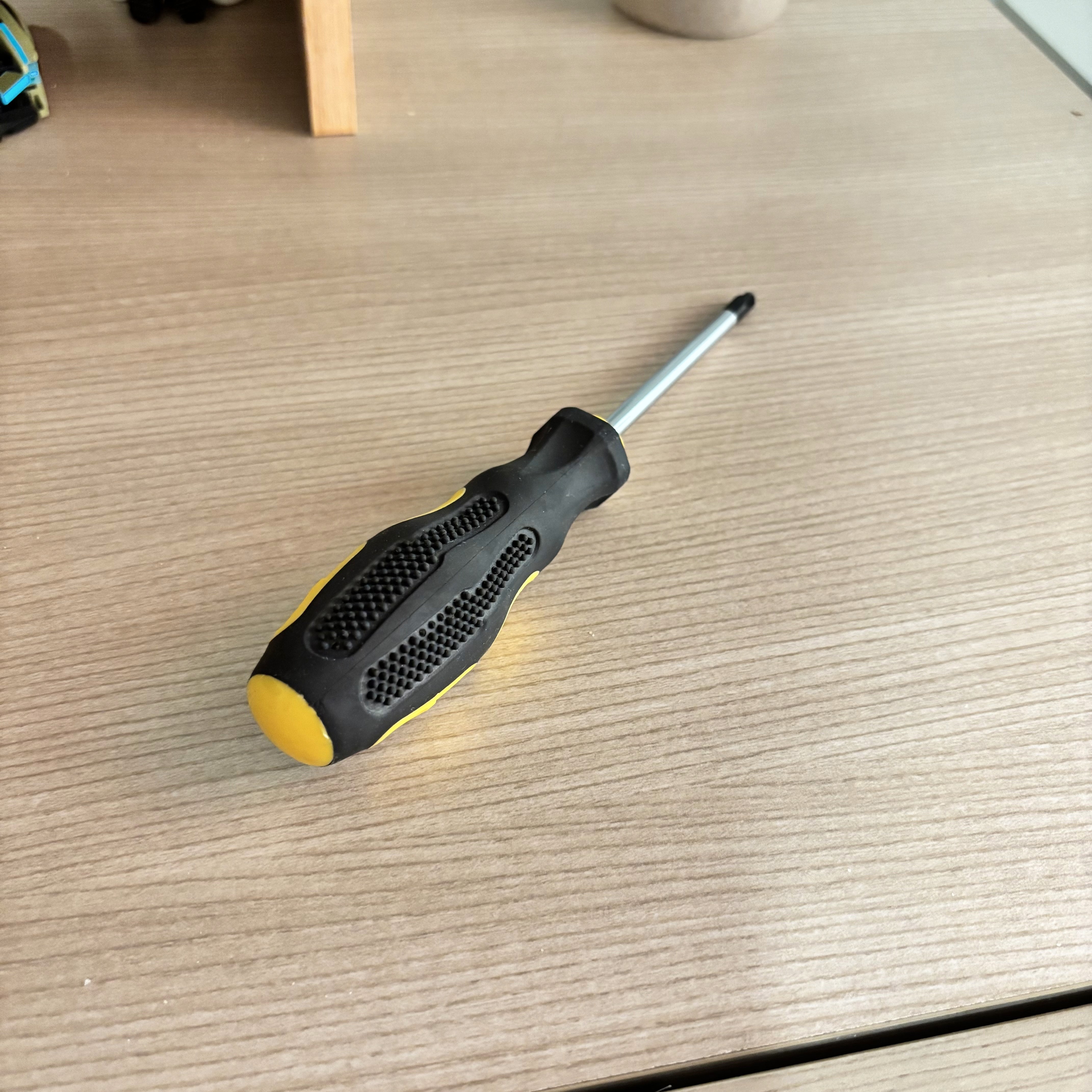 The screwdriver was a stand-in for the rotary filer, with a diameter close to the real thing. The keyboard brush slotted into the front face as the comb head stand-in. The phone case wrapped around the handle to approximate a soft-grip surface for the fingers. The shower head was used as a length reference for the brush head.