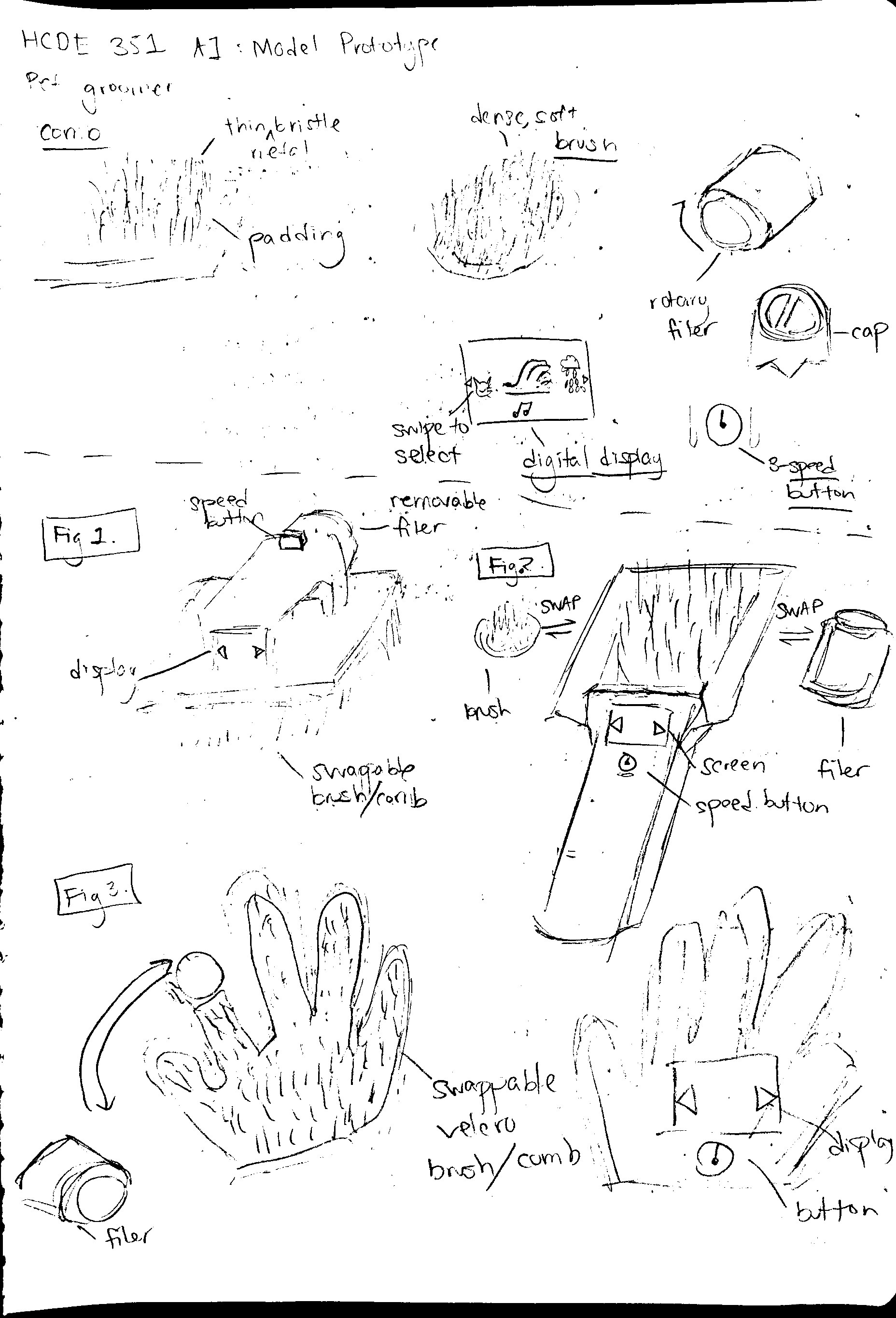 OXO Good Grips Furlifter Pro lo-fi prototyping for an all-in-one handheld pet grooming appliance.